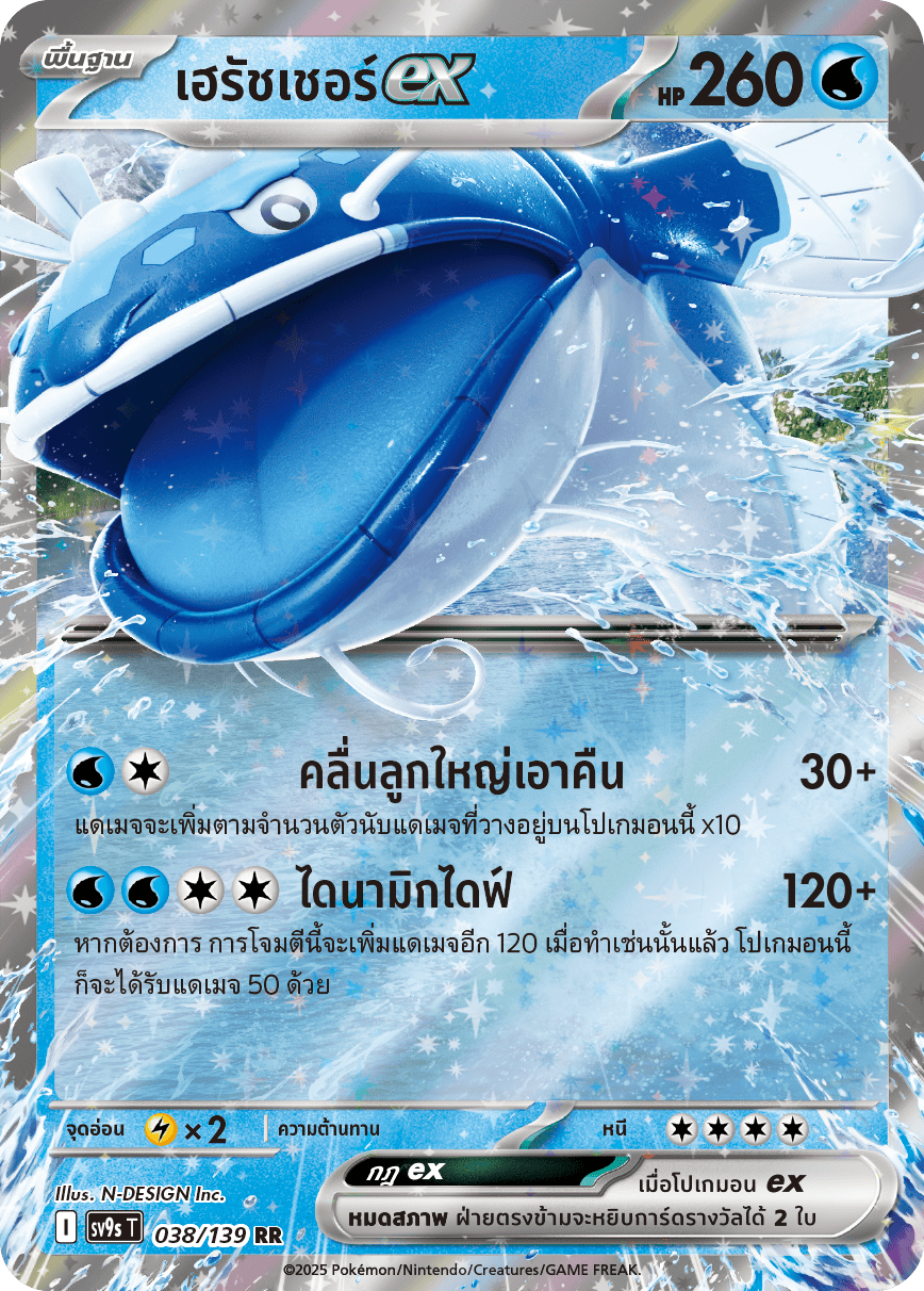 HP 260 / type Fighting stance Big wave takes revenge 30+ Damage is increased by the number of damage counters placed on this Pokémon x10. Dynamic Dive 120+ If you want, this attack will deal an additional 120 damage. When you do, this Pokemon will also take 50 damage. weakness Resistance escape ×2 -- I 038/139 evolution Herascher ex No.977 Painter N-DESIGN Inc.