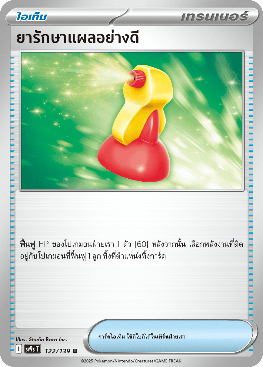 Item Card Restore 1 of our Pokémon's HP [60], then select 1 Energy attached to the restored Pokémon and discard it. I 122/139 Painter Studio Bora Inc.
