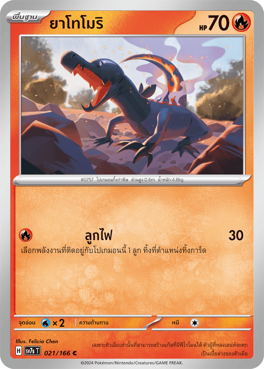 Yatomori HP 70 / type Fighting stance spark 30 Choose 1 Energy attached to this Pokémon and discard it in the discard pile. weakness Resistance escape ×2 -- H 021/166 evolution Yatomori Ennewt No. 757 Poison Lizard Pokémon Height 0.6m / Weight 4.8kg Only females can produce pheromone-containing gases. Males who are attracted to them become submissive to them. Illustrator Felicia Chen