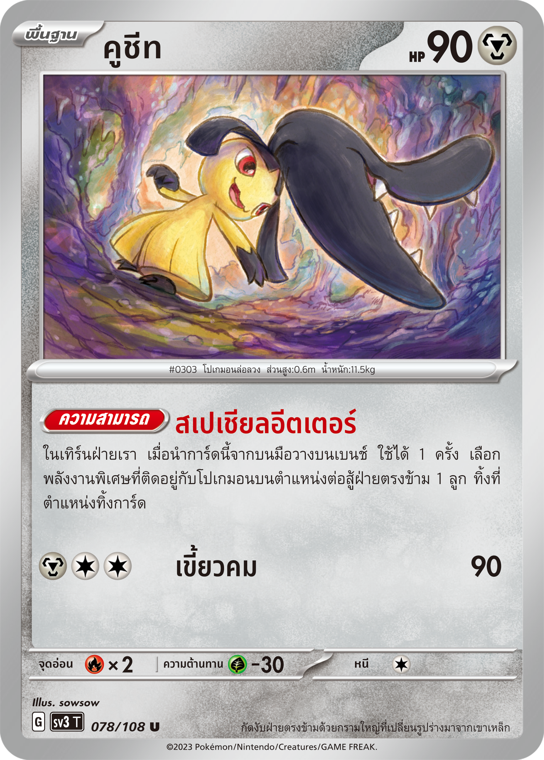 During your turn, when you place this card from your hand on the bench, you can use it once: choose 1 Special Energy attached to a Pokémon in your opponent's battle position and discard it to the discard pile.