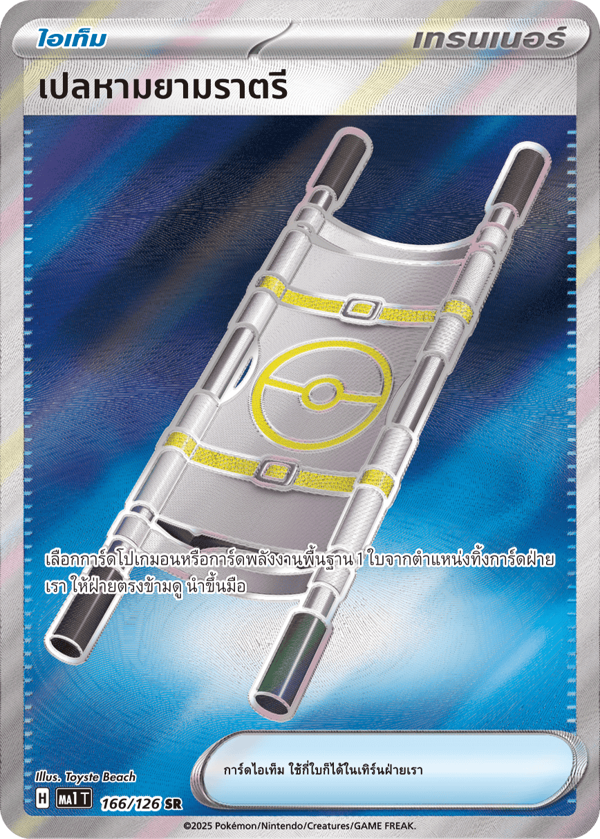 Stretcher at night Item Card Choose 1 Pokémon or Basic Energy Card from your discard pile, show it to your opponent, and add it to their hand. I 166/126 Illustrator Toyste Beach
